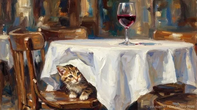 印象派×パリのカフェテラス×猫